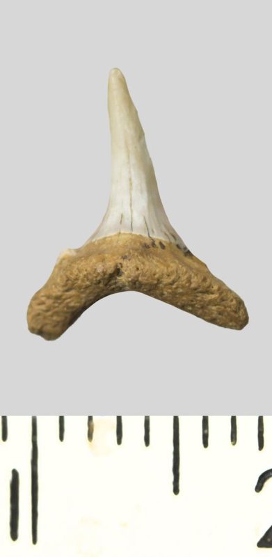 Зуб. Акула. Odontaspis whitei Arambourg, 1952. Классификация: Хордовые Chordata, Позвоночные Vertebrata, Хрящевые рыбы Chondrichthyes, Пластиножаберные Elasmobranchii