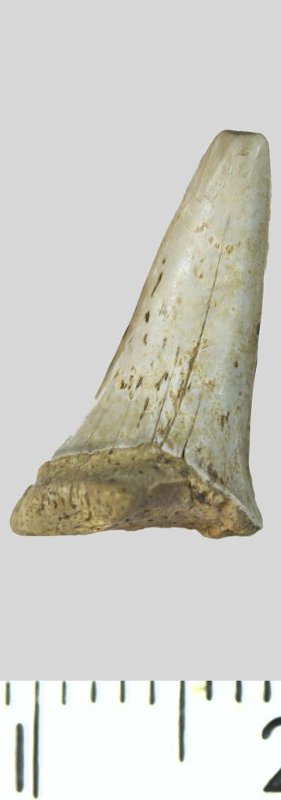 Зуб (фрагмент). Акула. Palaeohypotodus rutoti (Winkler, 1874). Классификация: Хордовые Chordata, Позвоночные Vertebrata, Хрящевые рыбы Chondrichthyes, Пластиножаберные Elasmobranchii