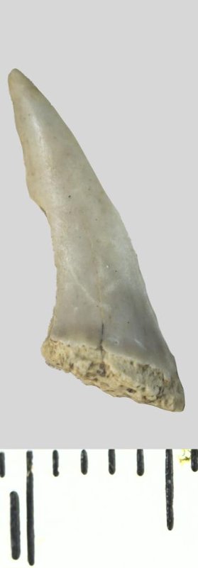 Зуб (фрагмент). Акула. Palaeohypotodus rutoti (Winkler, 1874). Классификация: Хордовые Chordata, Позвоночные Vertebrata, Хрящевые рыбы Chondrichthyes, Пластиножаберные Elasmobranchii