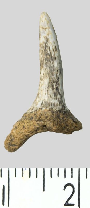Зуб. Акула. Striatolamia striata (Winkler, 1874). Классификация: Хордовые Chordata, Позвоночные Vertebrata, Хрящевые рыбы Chondrichthyes, Пластиножаберные Elasmobranchii