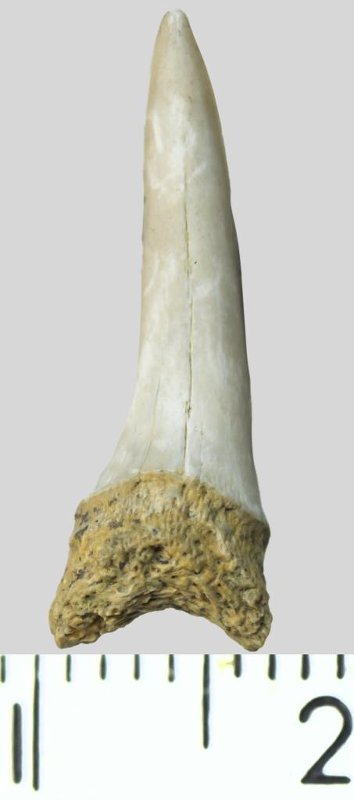 Зуб. Акула. Palaeohypotodus rutoti (Winkler, 1874). Классификация: Хордовые Chordata, Позвоночные Vertebrata, Хрящевые рыбы Chondrichthyes, Пластиножаберные Elasmobranchii