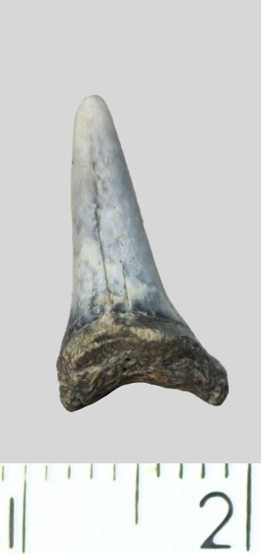 Зуб. Акула. Palaeohypotodus rutoti (Winkler, 1874). Классификация: Хордовые Chordata, Позвоночные Vertebrata, Хрящевые рыбы Chondrichthyes, Пластиножаберные Elasmobranchii