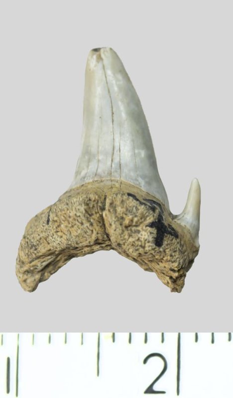 Зуб. Акула. Palaeohypotodus rutoti (Winkler, 1874). Классификация: Хордовые Chordata, Позвоночные Vertebrata, Хрящевые рыбы Chondrichthyes, Пластиножаберные Elasmobranchii