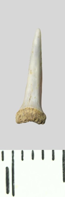 Зуб. Акула. Odontaspis whitei Arambourg, 1952. Классификация: Хордовые Chordata, Позвоночные Vertebrata, Хрящевые рыбы Chondrichthyes, Пластиножаберные Elasmobranchii