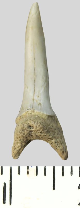Зуб. Акула. Palaeohypotodus rutoti (Winkler, 1874). Классификация: Хордовые Chordata, Позвоночные Vertebrata, Хрящевые рыбы Chondrichthyes, Пластиножаберные Elasmobranchii