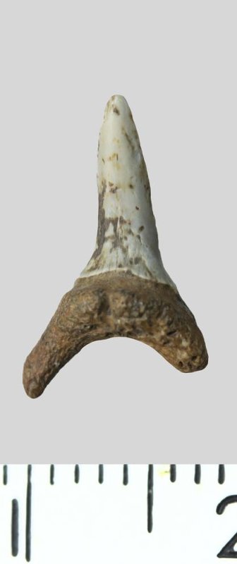 Зуб. Акула. Odontaspis whitei Arambourg, 1952. Классификация: Хордовые Chordata, Позвоночные Vertebrata, Хрящевые рыбы Chondrichthyes, Пластиножаберные Elasmobranchii