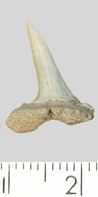 Зуб. Акула. Striatolamia striata (Winkler, 1874). Классификация: Хордовые Chordata, Позвоночные Vertebrata, Хрящевые рыбы Chondrichthyes, Пластиножаберные Elasmobranchii