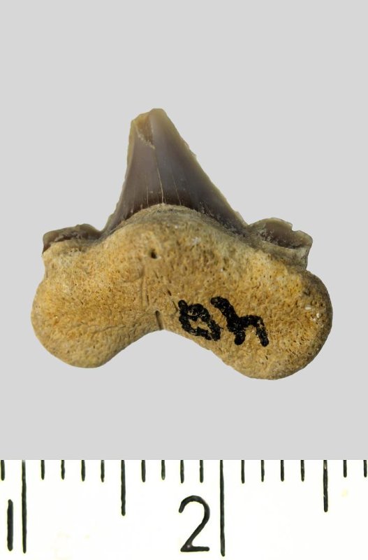 Зуб. Акула. Cretoxyrhina denticulata (Glueckman, 1957). Классификация: Хордовые Chordata, Позвоночные Vertebrata, Хрящевые рыбы Chondrichthyes, Пластиножаберные Elasmobranchii, Акулы Selachii, Ламнообразные Lamniformes, Cretoxyrhinidae