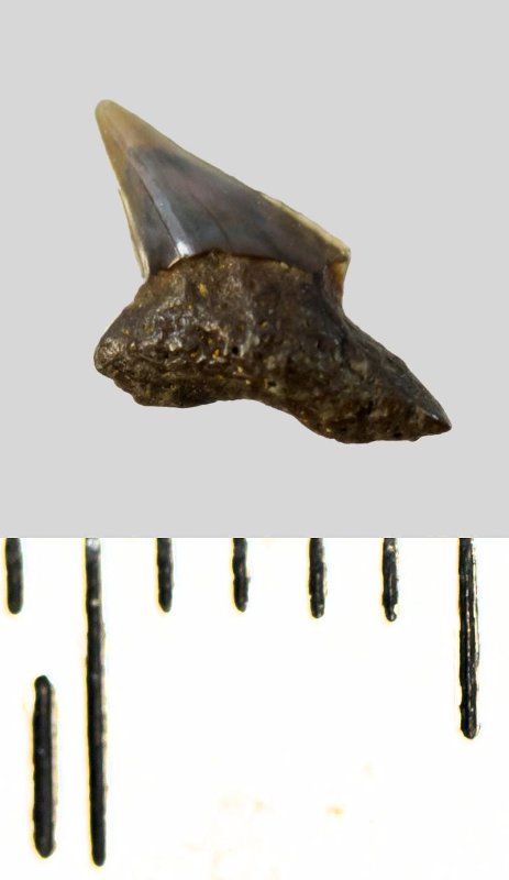 Зуб. Акула. Palaeoanacorax volgensis Glueckman, 1971. Классификация: Хордовые Chordata, Позвоночные Vertebrata, Хрящевые рыбы Chondrichthyes, Пластиножаберные Elasmobranchii, Акулы Selachii, Ламнообразные Lamniformes, Anacoracidae