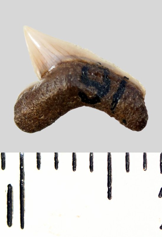 Зуб. Акула. Palaeoanacorax obliquus (Reuss, 1845). Классификация: Хордовые Chordata, Позвоночные Vertebrata, Хрящевые рыбы Chondrichthyes, Пластиножаберные Elasmobranchii, Акулы Selachii, Ламнообразные Lamniformes