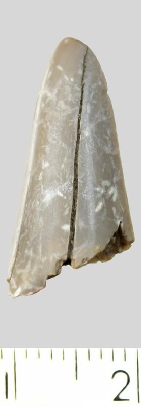 Зуб (фрагмент). Акула. Cretoxyrhina denticulata (Glueckman, 1957). Классификация: Хордовые Chordata, Позвоночные Vertebrata, Хрящевые рыбы Chondrichthyes, Пластиножаберные Elasmobranchii, Акулы Selachii, Ламнообразные Lamniformes