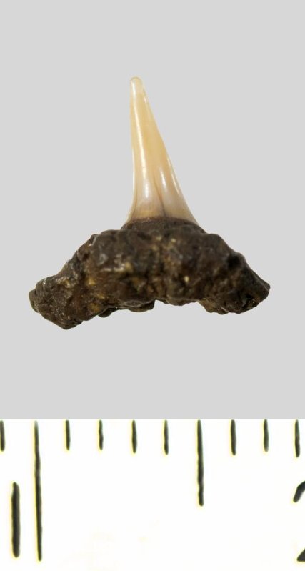 Зуб. Акула. Synechodus dubrisiensis (Mackie, 1863). Классификация: Хордовые Chordata, Позвоночные Vertebrata, Хрящевые рыбы Chondrichthyes, Пластиножаберные Elasmobranchii, Акулы Selachii, Синеходонтообразные Synechodontiformes