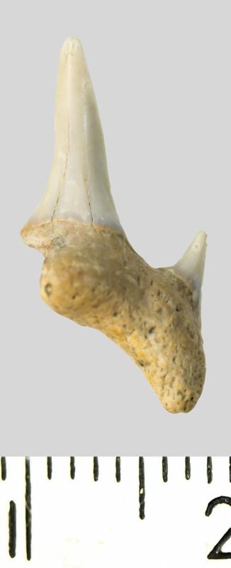 Зуб. Акула. Archaeolamna cf. kopingensis (Davis, 1890). Классификация: Хордовые Chordata, Позвоночные Vertebrata, Хрящевые рыбы Chondrichthyes, Пластиножаберные Elasmobranchii, Акулы Selachii, Ламнообразные Lamniformes