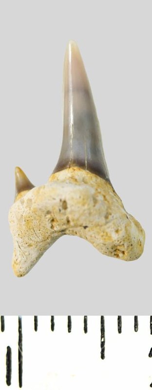 Зуб. Акула. Archaeolamna cf. kopingensis (Davis, 1890). Классификация: Хордовые Chordata, Позвоночные Vertebrata, Хрящевые рыбы Chondrichthyes, Пластиножаберные Elasmobranchii, Акулы Selachii, Ламнообразные Lamniformes