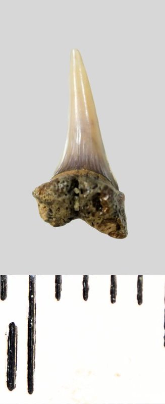 Зуб. Акула. Eostriatolamia subulata (Agassiz, 1843). Классификация: Хордовые Chordata, Позвоночные Vertebrata, Хрящевые рыбы Chondrichthyes, Пластиножаберные Elasmobranchii, Акулы Selachii, Ламнообразные Lamniformes