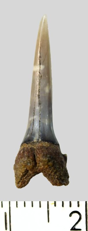 Зуб. Акула. Striatolamia teretidens (White, 1931). Классификация: Хордовые Chordata, Позвоночные Vertebrata, Хрящевые рыбы Chondrichthyes, Пластиножаберные Elasmobranchii