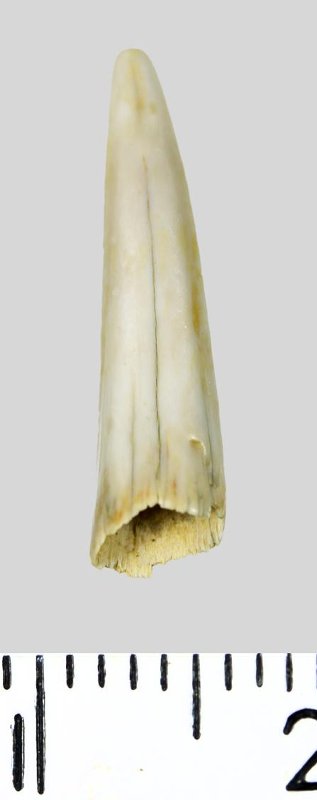 Зуб (фрагмент). Акула. Striatolamia elegans (Agassiz, 1838). Классификация: Хордовые Chordata, Позвоночные Vertebrata, Хрящевые рыбы Chondrichthyes, Пластиножаберные Elasmobranchii