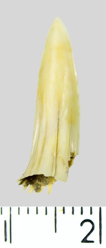 Зуб (фрагмент). Акула. Striatolamia macrota (Agassiz, 1843). Классификация: Хордовые Chordata, Позвоночные Vertebrata, Хрящевые рыбы Chondrichthyes, Пластиножаберные Elasmobranchii