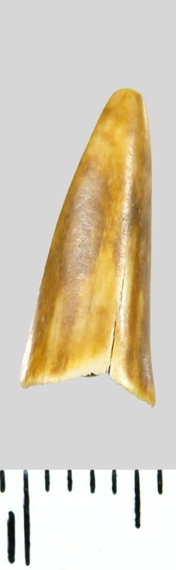 Зуб (фрагмент). Акула. Jaekelotodontidae gen. et sp. indet. Классификация: Хордовые Chordata, Позвоночные Vertebrata, Хрящевые рыбы Chondrichthyes, Пластиножаберные Elasmobranchii