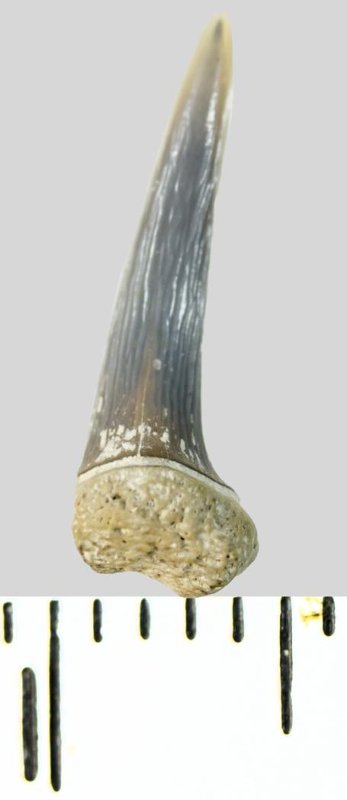 Зуб. Акула. Odontaspis aff. substriata. Классификация: Хордовые Chordata, Позвоночные Vertebrata, Хрящевые рыбы Chondrichthyes, Пластиножаберные Elasmobranchii