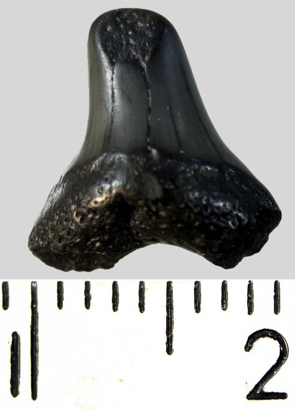 Зуб. Акула. Striatolamia teretidens (White, 1931). Классификация: Хордовые Chordata, Позвоночные Vertebrata, Хрящевые рыбы Chondrichthyes, Пластиножаберные Elasmobranchii