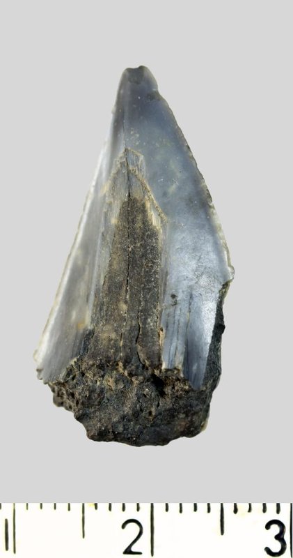 Зуб (фрагмент). Акула. Otodus obliquus Agassiz, 1843. Классификация: Хордовые Chordata, Позвоночные Vertebrata, Хрящевые рыбы Chondrichthyes, Пластиножаберные Elasmobranchii