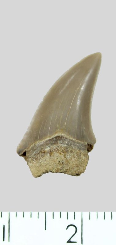 Зуб (фрагмент). Акула. Otodus subserratus (Agassiz, 1843). Классификация: Хордовые Chordata, Позвоночные Vertebrata, Хрящевые рыбы Chondrichthyes, Пластиножаберные Elasmobranchii