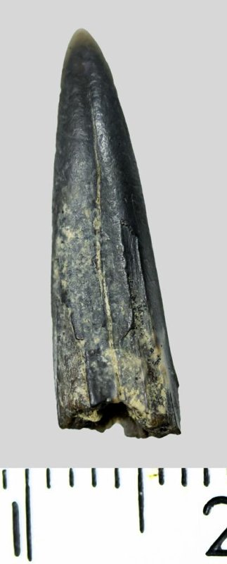 Зуб (фрагмент). Акула. Striatolamia ex. gr. teretidens (White, 1931). Классификация: Хордовые Chordata, Позвоночные Vertebrata, Хрящевые рыбы Chondrichthyes, Пластиножаберные Elasmobranchii