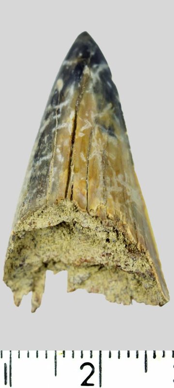 Зуб (фрагмент). Акула. Otodus subserratus (Agassiz, 1843). Классификация: Хордовые Chordata, Позвоночные Vertebrata, Хрящевые рыбы Chondrichthyes, Пластиножаберные Elasmobranchii