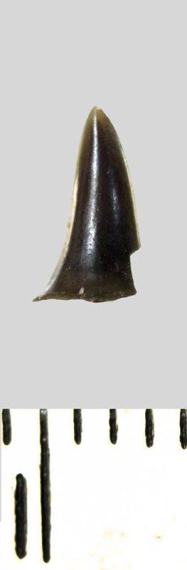 Зуб (фрагмент). Акула. Lamniformes gen. et sp. indet. Классификация: Хордовые Chordata, Позвоночные Vertebrata, Хрящевые рыбы Chondrichthyes, Пластиножаберные Elasmobranchii