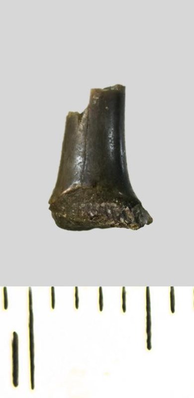 Зуб (фрагмент). Акула. Lamniformes gen. et sp. indet. Классификация: Хордовые Chordata, Позвоночные Vertebrata, Хрящевые рыбы Chondrichthyes, Пластиножаберные Elasmobranchii