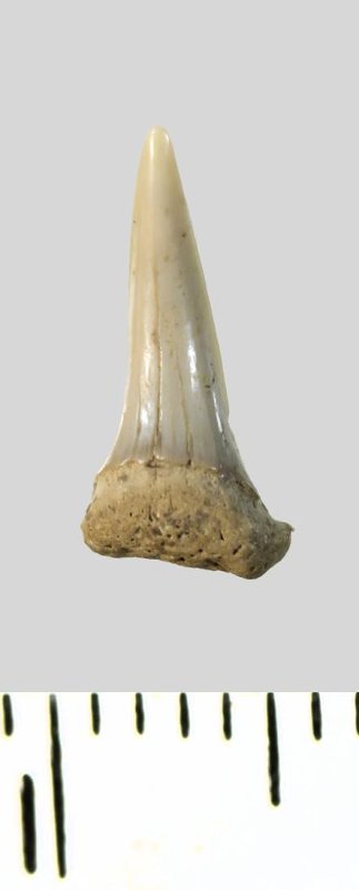 Зуб. Акула. Lamniformes gen. et sp. indet. Классификация: Хордовые Chordata, Позвоночные Vertebrata, Хрящевые рыбы Chondrichthyes, Пластиножаберные Elasmobranchii
