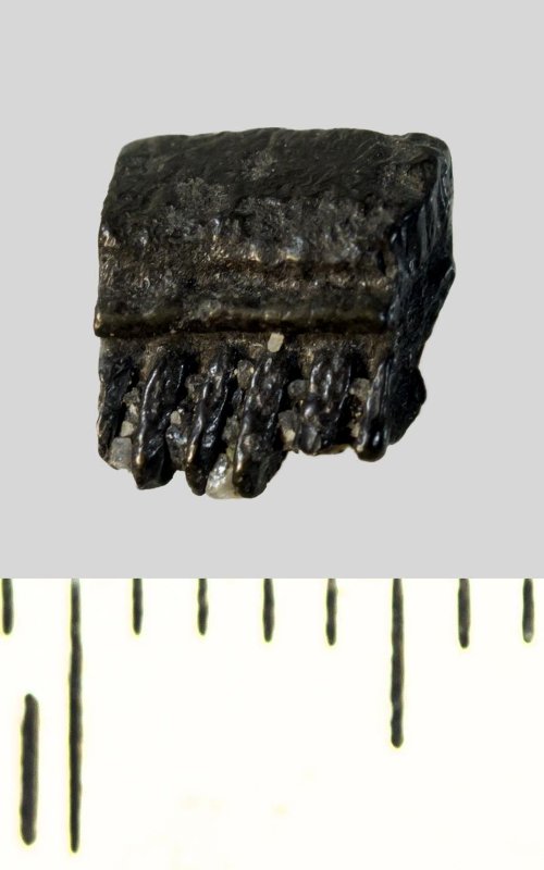 Зуб (фрагмент). Скат. Myliobatis sp. Классификация: Хордовые Chordata, Позвоночные Vertebrata, Хрящевые рыбы Chondrichthyes, Пластиножаберные Elasmobranchii