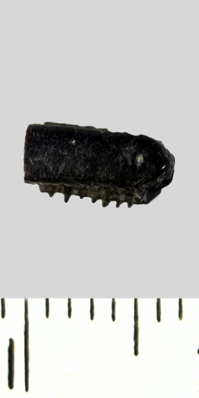 Зуб (фрагмент). Скат. Myliobatis sp. Классификация: Хордовые Chordata, Позвоночные Vertebrata, Хрящевые рыбы Chondrichthyes, Пластиножаберные Elasmobranchii