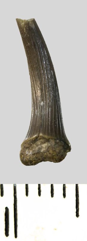 Зуб. Акула. Scapanorhynchus armenicus Glikman, 1980. Классификация: Хордовые Chordata, Позвоночные Vertebrata, Хрящевые рыбы Chondrichthyes, Пластиножаберные Elasmobranchii