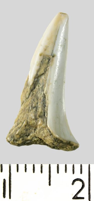 Зуб (фрагмент). Акула. Palaeohypotodus sp. Классификация: Хордовые Chordata, Позвоночные Vertebrata, Хрящевые рыбы Chondrichthyes, Пластиножаберные Elasmobranchii