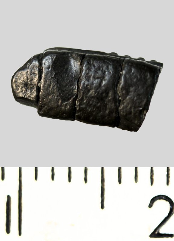 Зуб (фрагмент). Скат. Myliobatis sp. Классификация: Хордовые Chordata, Позвоночные Vertebrata, Хрящевые рыбы Chondrichthyes, Пластиножаберные Elasmobranchii