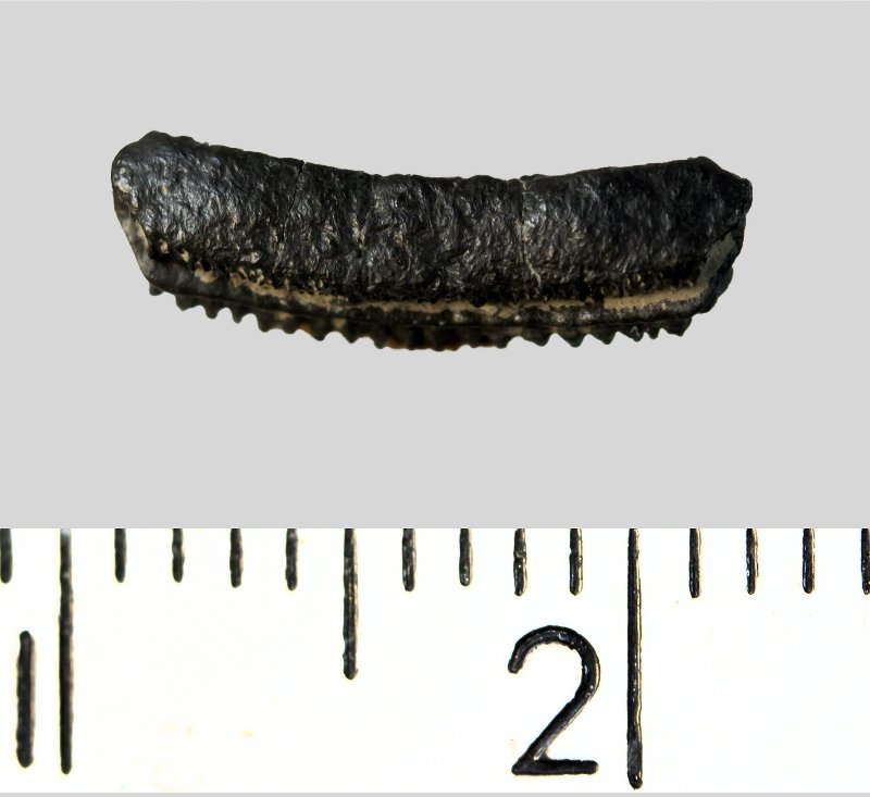 Зуб. Скат. Myliobatis sp. Классификация: Хордовые Chordata, Позвоночные Vertebrata, Хрящевые рыбы Chondrichthyes, Пластиножаберные Elasmobranchii