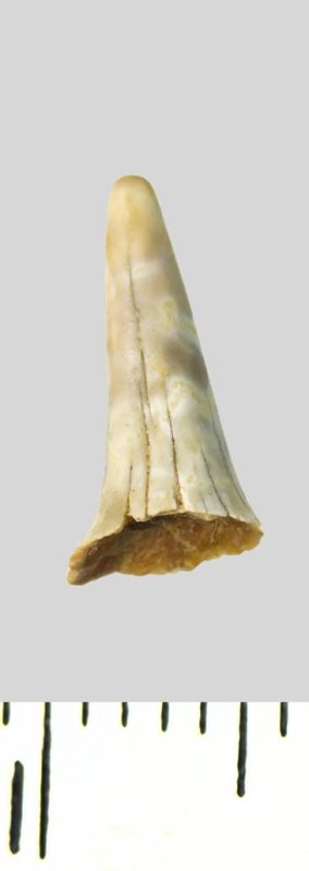 Зуб (фрагмент). Акула. Lamniformes gen. et sp. indet. Классификация: Хордовые Chordata, Позвоночные Vertebrata, Хрящевые рыбы Chondrichthyes, Пластиножаберные Elasmobranchii