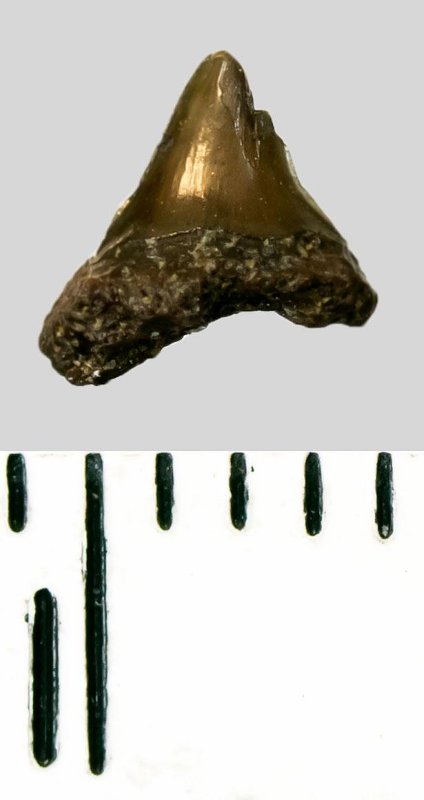 Зуб. Акула. Lamniformes gen. indet. Классификация: Хордовые Chordata, Позвоночные Vertebrata, Хрящевые рыбы Chondrichthyes, Пластиножаберные Elasmobranchii, Акулы Selachii, Ламнообразные Lamniformes