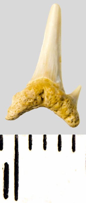 Зуб. Акула. Eostriatolamia subulata (Agassiz, 1843). Классификация: Хордовые Chordata, Позвоночные Vertebrata, Хрящевые рыбы Chondrichthyes, Пластиножаберные Elasmobranchii, Акулы Selachii, Ламнообразные Lamniformes, Песчаные акулы Odontaspididae