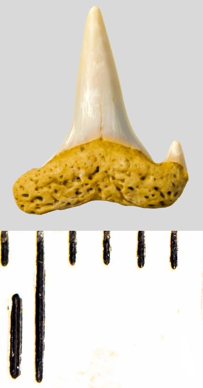 Зуб. Акула. Eostriatolamia subulata (Agassiz, 1843). Классификация: Хордовые Chordata, Позвоночные Vertebrata, Хрящевые рыбы Chondrichthyes, Пластиножаберные Elasmobranchii, Акулы Selachii, Ламнообразные Lamniformes, Песчаные акулы Odontaspididae