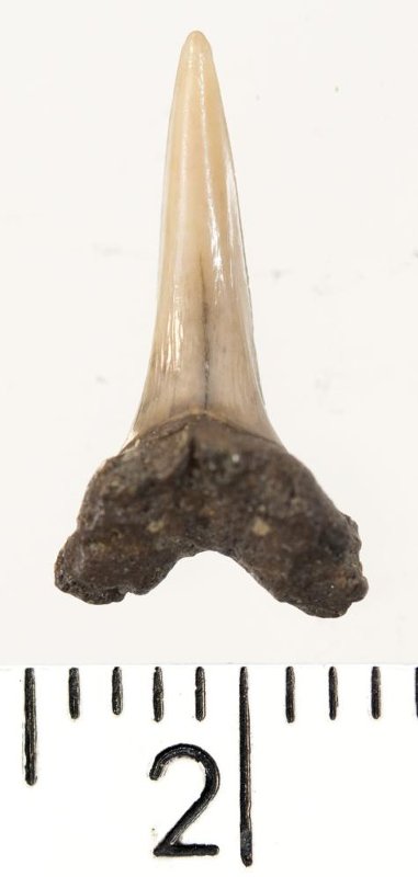 Зуб. Акула. Eostriatolamia subulata (Agassiz, 1843). Классификация: Хордовые Chordata, Позвоночные Vertebrata, Хрящевые рыбы Chondrichthyes, Пластиножаберные Elasmobranchii, Акулы Selachii, Ламнообразные Lamniformes, Песчаные акулы Odontaspididae