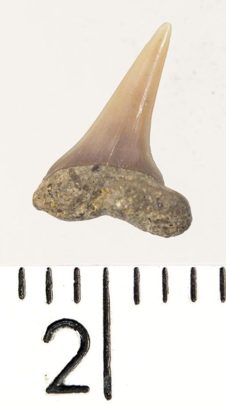 Зуб. Акула. Eostriatolamia subulata (Agassiz, 1843). Классификация: Хордовые Chordata, Позвоночные Vertebrata, Хрящевые рыбы Chondrichthyes, Пластиножаберные Elasmobranchii, Акулы Selachii, Ламнообразные Lamniformes, Песчаные акулы Odontaspididae