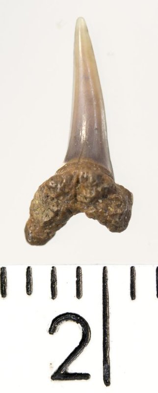 Зуб. Акула. Eostriatolamia subulata (Agassiz, 1843). Классификация: Хордовые Chordata, Позвоночные Vertebrata, Хрящевые рыбы Chondrichthyes, Пластиножаберные Elasmobranchii, Акулы Selachii, Ламнообразные Lamniformes, Песчаные акулы Odontaspididae