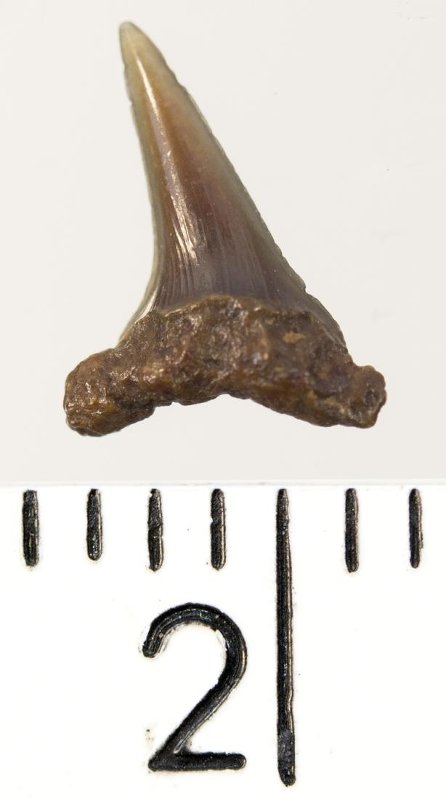 Зуб. Акула. Eostriatolamia subulata (Agassiz, 1843). Классификация: Хордовые Chordata, Позвоночные Vertebrata, Хрящевые рыбы Chondrichthyes, Пластиножаберные Elasmobranchii, Акулы Selachii, Ламнообразные Lamniformes, Песчаные акулы Odontaspididae