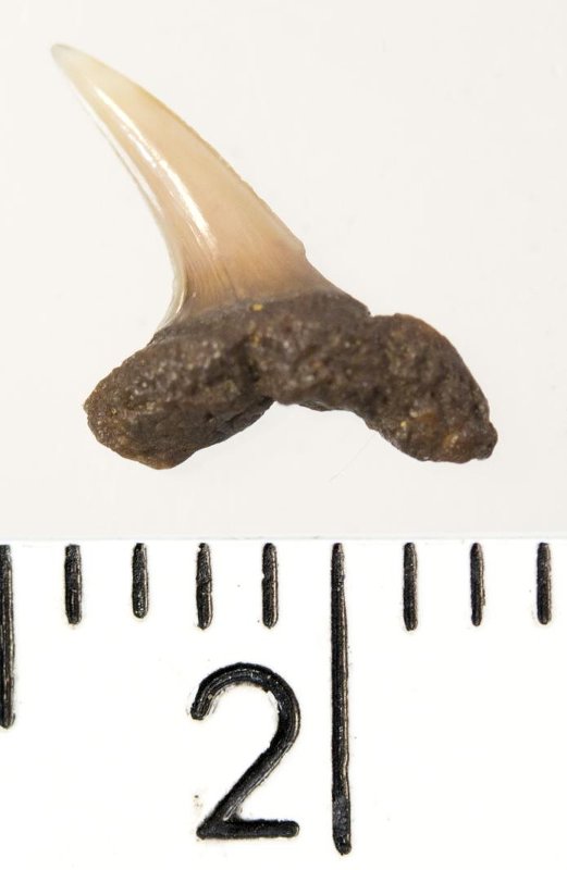 Зуб. Акула. Eostriatolamia subulata (Agassiz, 1843). Классификация: Хордовые Chordata, Позвоночные Vertebrata, Хрящевые рыбы Chondrichthyes, Пластиножаберные Elasmobranchii, Акулы Selachii, Ламнообразные Lamniformes, Песчаные акулы Odontaspididae