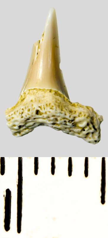 Зуб. Акула. Eostriatolamia subulata (Agassiz, 1843). Классификация: Хордовые Chordata, Позвоночные Vertebrata, Хрящевые рыбы Chondrichthyes, Пластиножаберные Elasmobranchii, Акулы Selachii, Ламнообразные Lamniformes, Песчаные акулы Odontaspididae