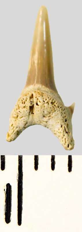 Зуб. Акула. Eostriatolamia subulata (Agassiz, 1843). Классификация: Хордовые Chordata, Позвоночные Vertebrata, Хрящевые рыбы Chondrichthyes, Пластиножаберные Elasmobranchii, Акулы Selachii, Ламнообразные Lamniformes, Песчаные акулы Odontaspididae