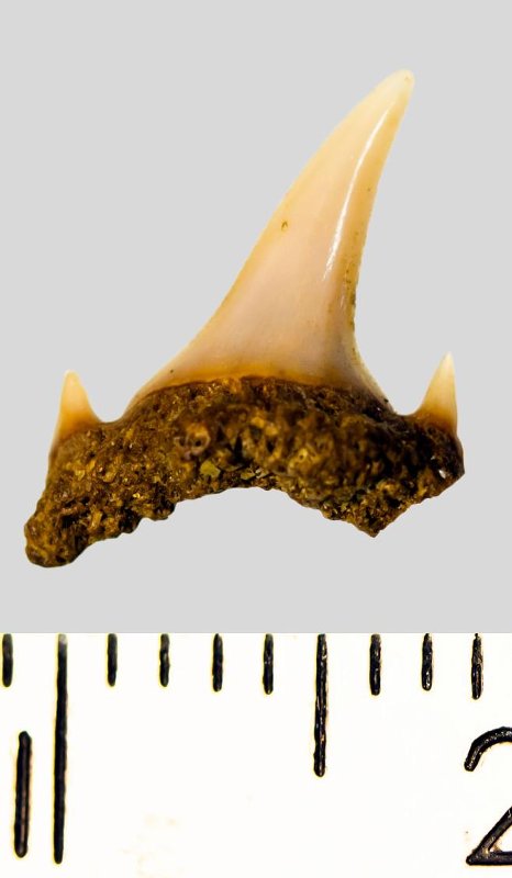 Зуб. Акула. Eostriatolamia subulata (Agassiz, 1843). Классификация: Хордовые Chordata, Позвоночные Vertebrata, Хрящевые рыбы Chondrichthyes, Пластиножаберные Elasmobranchii, Акулы Selachii, Ламнообразные Lamniformes, Песчаные акулы Odontaspididae